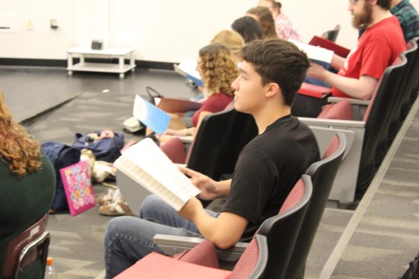 Most people likely are not thinking about Christmas music until after Halloween or Thanksgiving. If you are a musician, this is usually not the case. As early as August, at any level of experience, you begin rehearsing the holiday hits for upcoming concerts, while the daily temperature can still be above 80 degrees. This expectation is no different for IUK’s Cougar Choir. On Thursday, September 25, everyone gathered for their usual scheduled rehearsal. After mobile and vocal warmups, they practiced two of the many songs they are planning on singing for their Christmas recital, “Fruit Cake”, and “Believe”. Members of the choir might still be settling into this semester, but they’re not the only ones. This year’s director, Matt Garhard, got a late start to the semester himself. “This is my first year with IUK. I actually just started last week. Everything is so far so good,” Garhard said. The group seemed very friendly, relaxed, and passionate about singing.